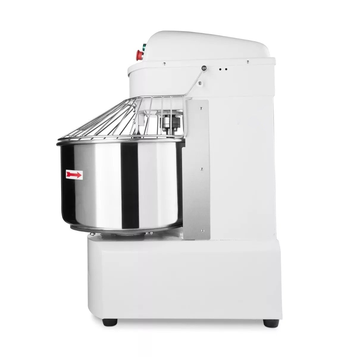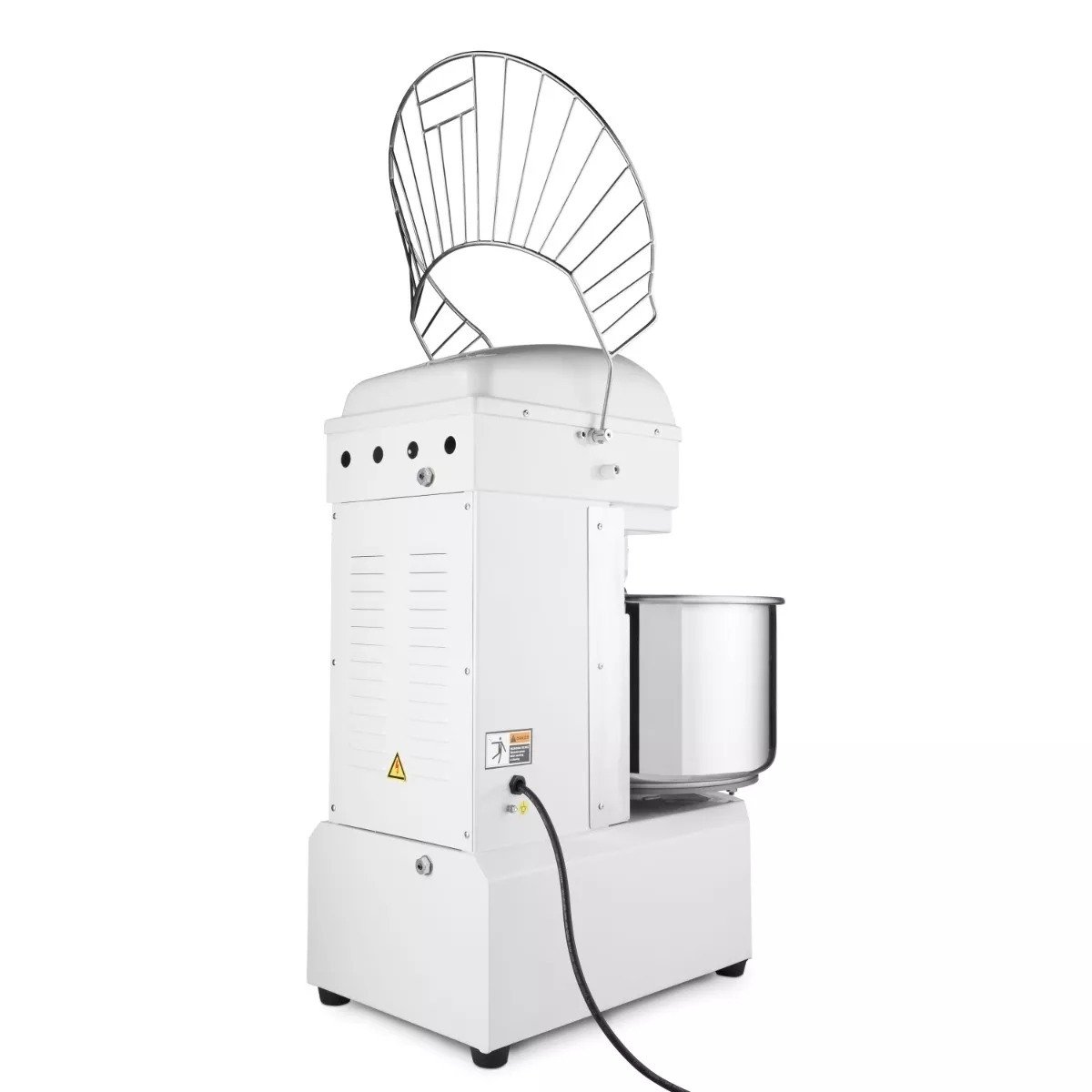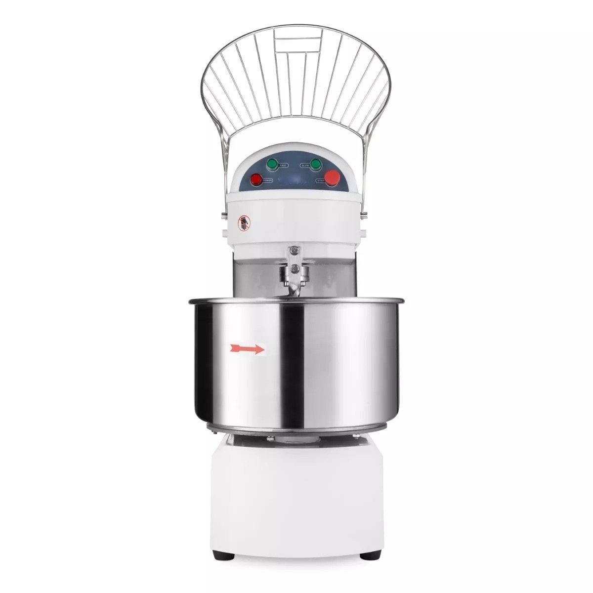 Graças ao potente motor, pode amassar grandes quantidades de massa com facilidade. Escolha a velocidade desejada, mais lenta ou mais rápida, através do painel de controlo simples: amassadura lenta a 110RPM ou amassadura rápida a 220RPM. Para poder trabalhar com esta amassadeira profissional com a maior segurança possível, dispõe de várias opções de segurança. A máquina está equipada com um interruptor de segurança que evita o sobreaquecimento do motor. Se isto acontecer, a amassadeira irá simplesmente desligar-se automaticamente. O recipiente de amassar tem também uma gaiola de protecção com fecho para evitar acidentes durante a amassadura. Finalmente, a amassadeira está equipada com uma protecção contra sobrecarga, para que o recipiente de amassar nunca fique sobrecarregado.