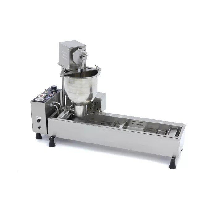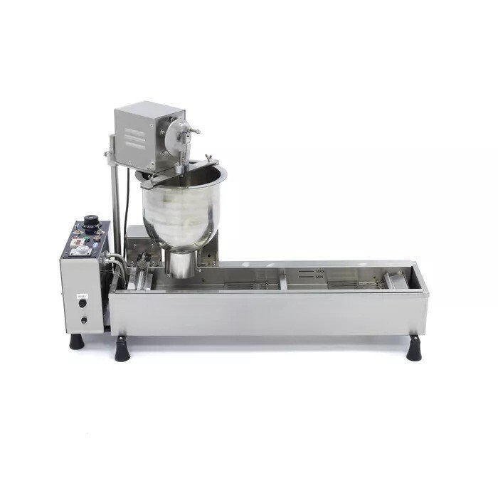 Precisa diariamente de grandes quantidades de deliciosos donuts frescos para a sua padaria, café ou outro estabelecimento de restauração? Este fabricante profissional de donuts é totalmente automático e faz 500 donuts por hora. O fabricante de donuts é fácil de usar e, graças aos materiais de aço inoxidável, muito robusto. Pode usar este poderoso fabricante de donuts durante anos e também pode levar uma tareia.