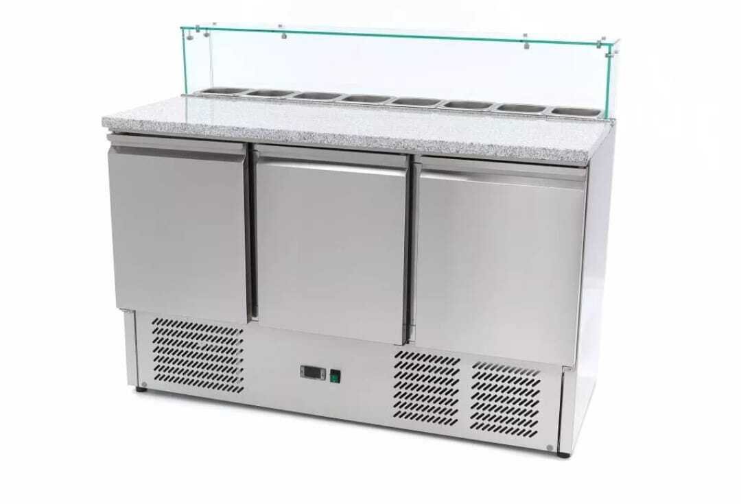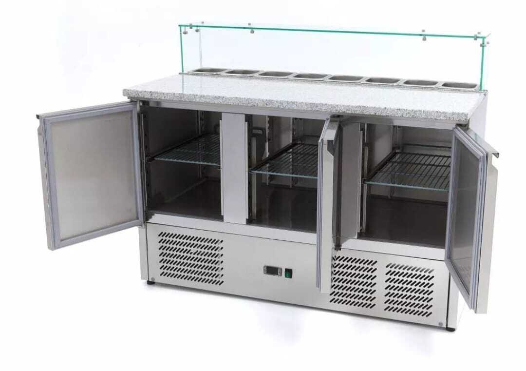 - frigorífico profissional de preparação de pizza com uma bancada de granito e uma capacidade refrigerada de 400L