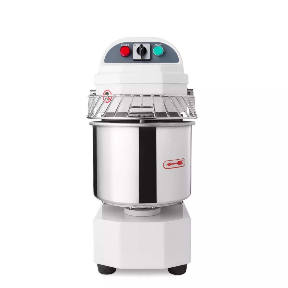 Trabalhar numa cozinha de restauração deve ser sempre feito em segurança. É por isso que esta batedeira tem com um interruptor de segurança para evitar que o motor sobreaqueça. Também se pode fechar o recipiente de mistura usando a gaiola de segurança para que as mãos ou outros objectos não possam ficar entre o gancho rotativo da massa enquanto em uso. Finalmente, esta amassadeira está equipada com uma protecção contra sobrecarga para que o recipiente de amassar nunca possa ser sobrecarregado.