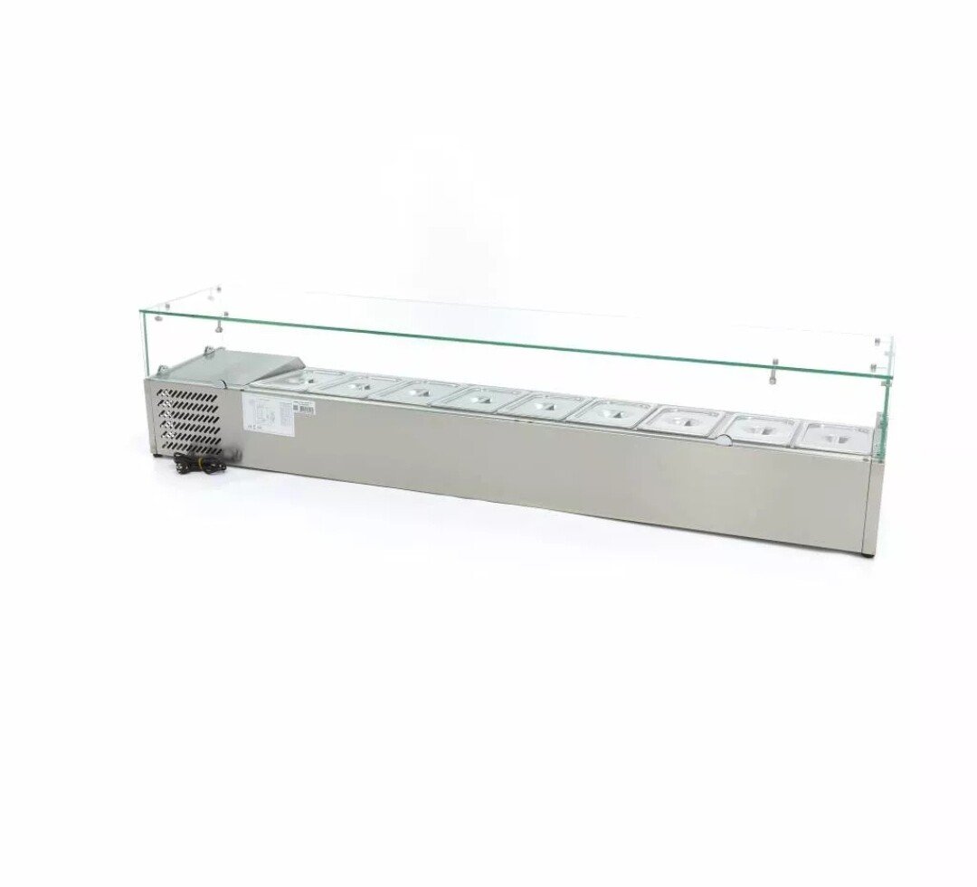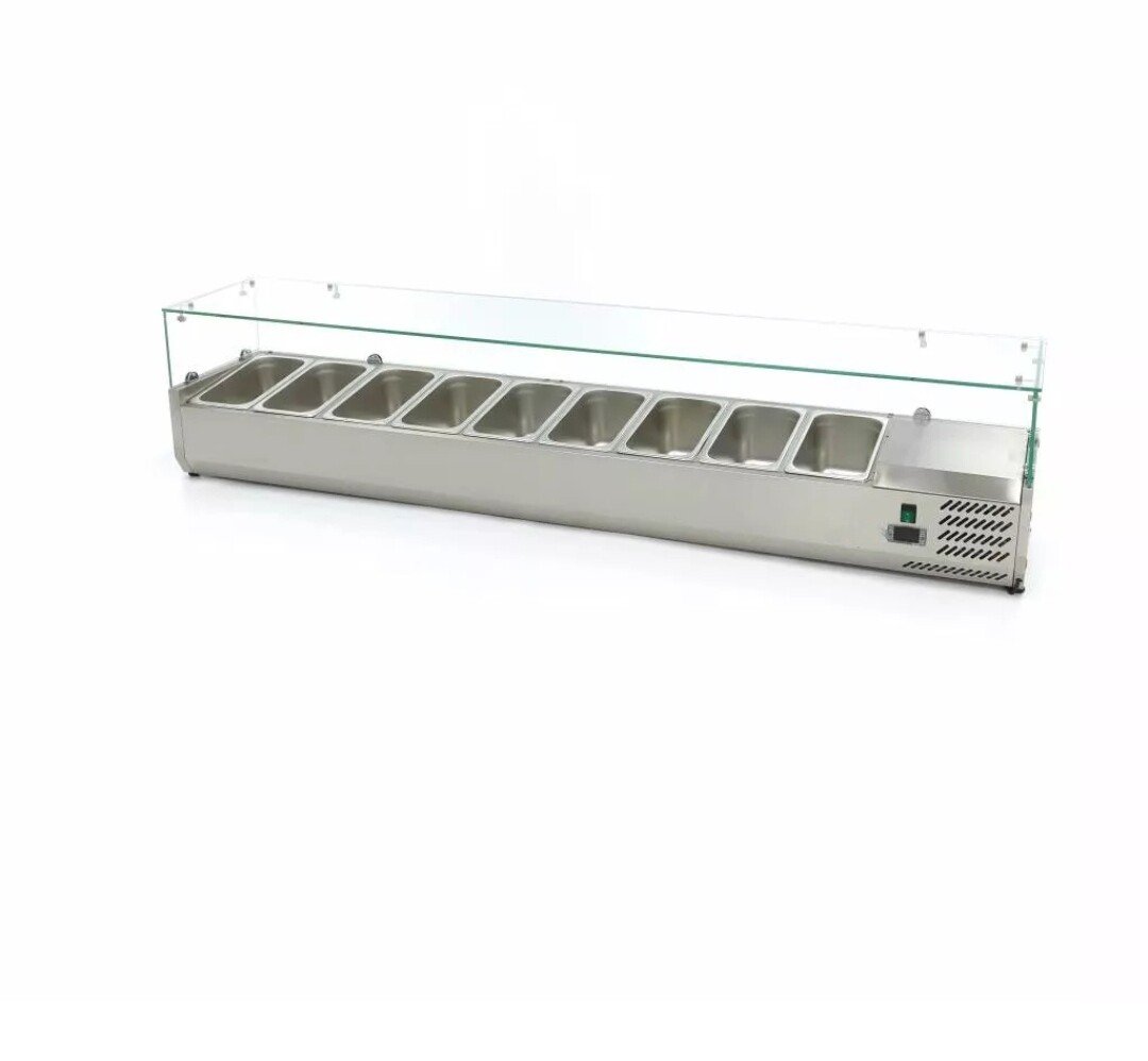 Saladas, ervas frescas, legumes, fruta e vários tipos de carnes: o que quer que deseje servir, este amplo frigorífico de bancada preparatória tem espaço suficiente para tudo. Com capacidade suficiente para nada menos que nove recipientes GN de 1/3, com ou sem tampa, os hóspedes em restaurantes, hotéis ou mesmo numa cantina da empresa podem seleccionar rápida e facilmente uma escolha ou mesmo servir-se a si próprios. Os contentores GN e as tampas associadas estão disponíveis separadamente.